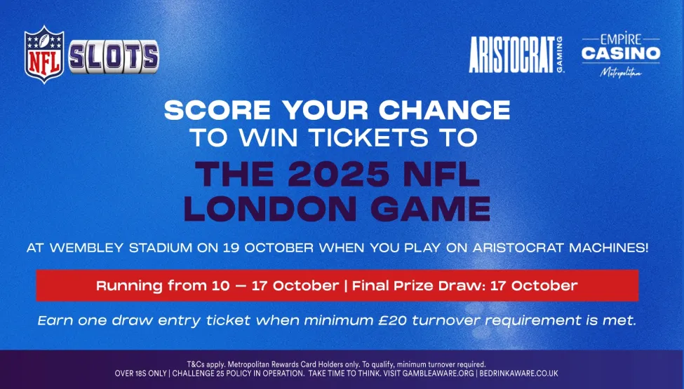 Play on our new Aristocrat Machines for the chance to be drawn to win a pair of tickets to see the Jacksonville Jaguars vs Los Angeles Rams game live at Wembley Stadium.