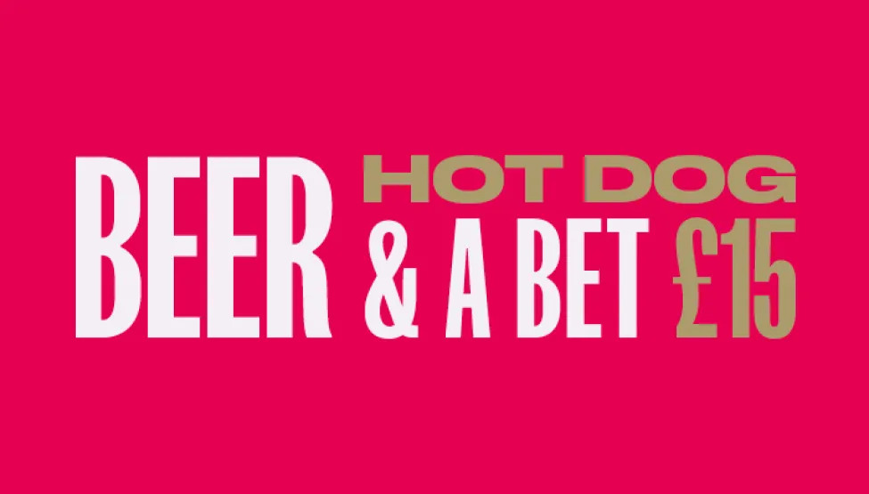 Your choice of hot dog, pint of house beer, and a £5 bet, all for just £15!