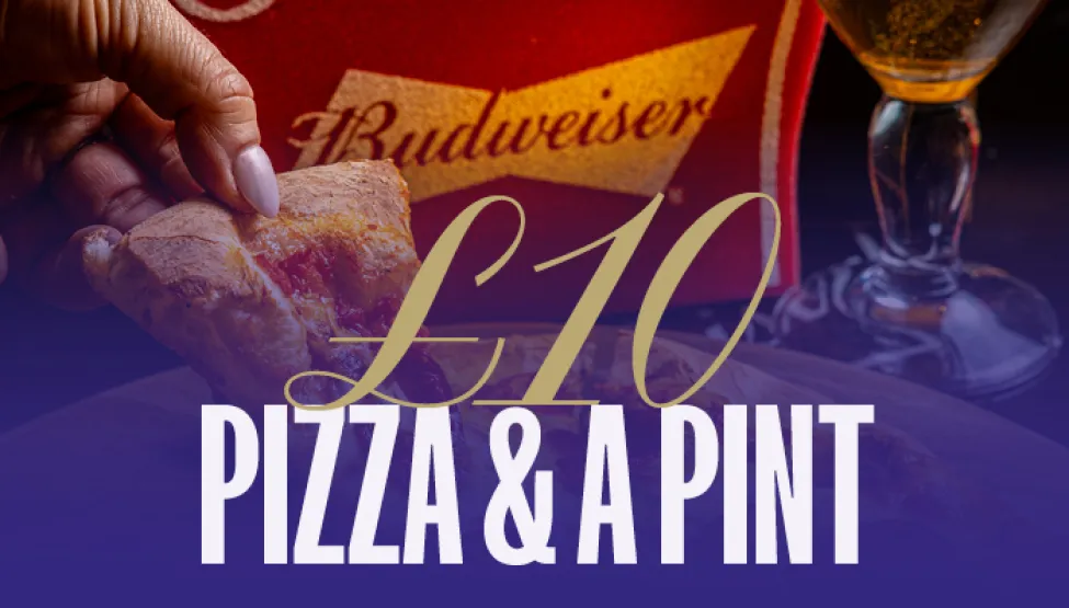 Enjoy a choice of Stella Artois or Budweiser pint, paired with a choice of Margherita, Smoked Pulled Chicken or Pepperoni 7-inch Pizza for £10.