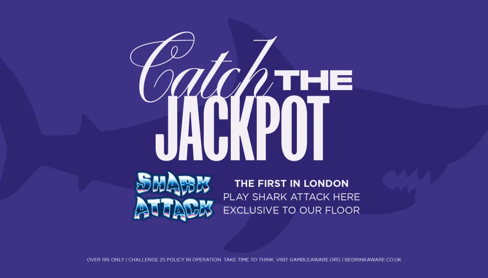 Shark Attack, from Novomatic, has surfaced at Empire Casino - the first in London! Come check it out, there's cash prizes and an all new jackpot to be won. Will you be the one to reel it in?