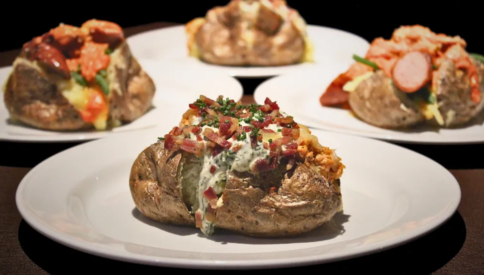 Crisp on the outside and light, fluffy on the inside — our oven-baked jacket potatoes are generously filled with bold, satisfying flavours. From rich and indulgent toppings to simple classics, there’s a perfect choice for every appetite.
